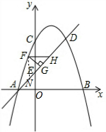 £¨2£©ÓÉE£¨0£¬1£©¿ÉÅжϡ÷OAEΪµÈÑüÖ±½ÇÈý½ÇÐΣ¬Ôò¡ÏEAO=45¡ã£¬ÓÉÓÚFH¡ÎOA£¬Ôò¿ÉµÃµ½¡÷FGHΪµÈÑüÖ±½ÇÈý½ÇÐΣ¬¹ýµãF×÷FN¡ÍxÖá½»ADÓÚN£¬Èçͼ£¬Ôò¡÷FNHΪµÈÑüÖ±½ÇÈý½ÇÐΣ¬ËùÒÔGH=NG£¬ÓÚÊǵõ½¡÷FGHÖܳ¤µÈÓÚ¡÷FGNµÄÖܳ¤£¬ÓÉÓÚFG=GN=$\frac{\sqrt{2}}{2}$FN£¬Ôò¡÷FGNÖܳ¤=£¨1+$\sqrt{2}$£©FN£¬ËùÒÔµ±FN×î´óʱ£¬¡÷FGNÖܳ¤µÄ×î´ó£¬ÉèF£¨x£¬-x2+2x+3£©£¬ÔòN£¨x£¬x+1£©£¬ÔòFN=-x2+2x+3-x-1£¬ÀûÓöþ´Îº¯ÊýµÄ×îÖµÎÊÌâ¿ÉµÃµ±x=$\frac{1}{2}$ʱ£¬FHÓÐ×î´óÖµ$\frac{9}{4}$£¬ÓÚÊÇ¡÷FGNÖܳ¤µÄ×î´óֵΪ$\frac{9+9\sqrt{2}}{4}$£»