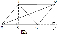 分析 作AE⊥BC于点E,DF⊥BC交BC的延长线于F,再根据四边形ABCD是平行四边形,求证△ABE≌△DCF,得出AE=DF,BE=CF,由勾股定理得AC2=AE2+EC2=AE2+(BC-BE)2,BD2=DF2+BF2=DF2+(BC+CF)2=AE2+(BC+BE)2,所以AC2+BD2=2(AB2+BC2)进而得出答案.