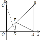 分析:连接CD,根据四边形OABC是正方形可知A、C关于直线OB对称,故CD的长即为PA+PD的最短长度,根据勾股定理求出CD的长即可.