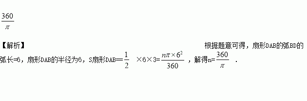 如图,某数学兴趣小组将边长为6的正方形铁丝框ABCD变形为以A为圆心, AB为半径的扇形,则扇形的圆心角∠DAB的度数是___________度.(结果保留