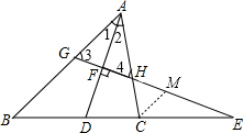 分析:过C作CM∥AB交GE于M,则可证得∠3=∠4,结合平行可得∠CMH=∠CHM,可证得CM=CH,又