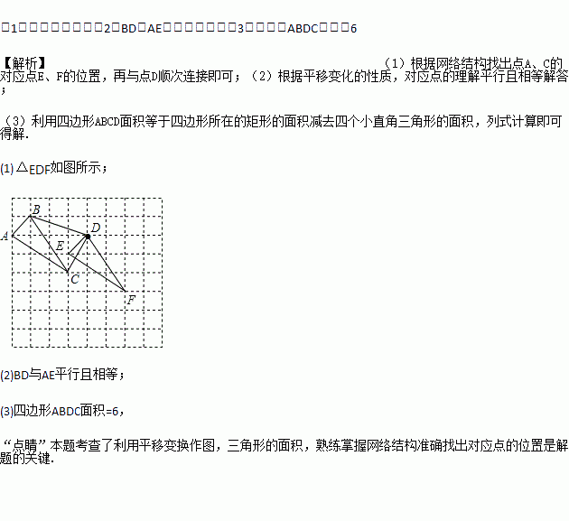 现将△ABC平移后得△EDF,使点B的对应点为点D,点A对应点为点E.