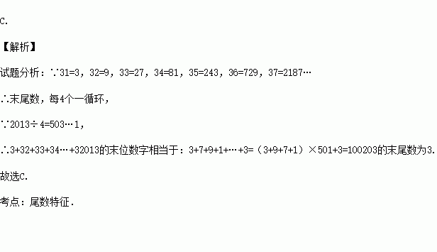 解答下列问题:3+32+33+34…+32013的末位数字( )