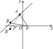 分析 先求出AB两点的坐标,再作点B关于x轴的对称点B′,连接AB′交x轴于点P′,根据两点之间线段最短即可得出结论.