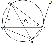已知:如图,在平行四边形ABCD中,AC=BC,⊙O是经过A、B、C三点的圆,点P是