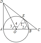 在△ADO和△EDO中$\left\{\begin{array}{l}{AO=EO}\\{∠3=∠4}\\{DO=DO}\end{array}\right.$,