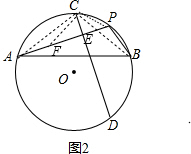 (2)如图2,PA、PB是⊙O的两条弦,AB为弦,C为劣弧