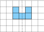 在5×7的方格纸上,任意选出5个小方块,涂上颜色,使着色图形为轴对称图形,并画出其对称轴(要求:着色出一个图形,并画出一条对称轴即可).