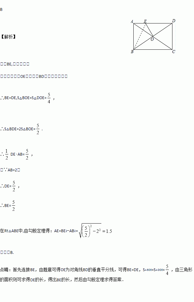 如图,矩形ABCD中,对角线AC、BD相交于点O,过点O作OE⊥BD交AD于点E.已知AB=2,△DOE的面积为