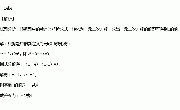 (2013•临夏州)现定义运算“★”,对于任意实数a、b,都有a★b=a2﹣3a+b,如:3★5=32﹣3×3+5,若x★2=6,则实数x的值是 .