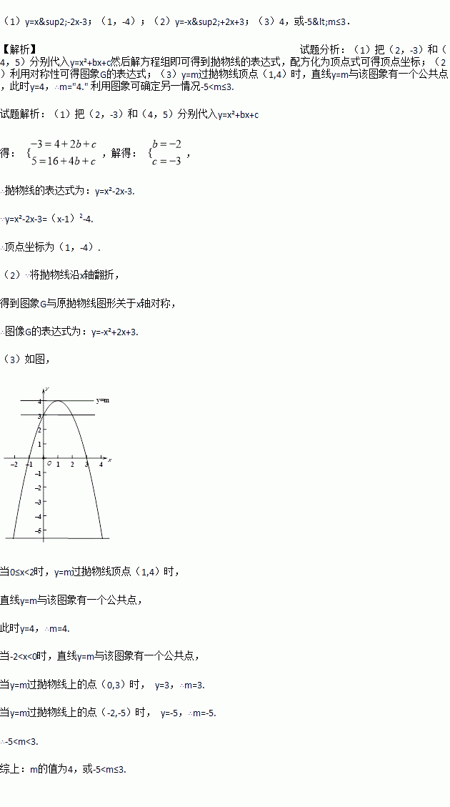 已知:抛物线y=x2+bx+c经过点(2,-3)和(4,5)。