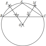 分析 (1)分别作出AB和AC的垂直平分线,两线的交点O就是△ABC的外接圆圆心,再以O为圆心,AO长为半径,画圆即可