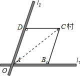 如图,两条笔直的公路l1、l2相交于点O,公路的旁边建三个加工厂A、B、D,已知AB=AD=5.2km,CB=CD=5km,村庄C到公路l1的距离为4km,则C村到公路l2的距离是(  )