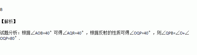 如图,∠AOB的两边OA,OB均为平面反光镜,∠AOB=40°.在射线0B上有一点P,从P点射出一束光线经OA上的Q点反射后,反射光线QR恰好与OB平行,则∠QPB的度数是( )