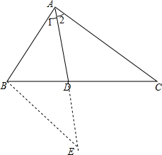 分析 过B作BE∥AC交AD的延长线于E,根据平行线的性质得到∠E=∠2,于是得到∠E=∠1,证得AB=BE,通过△DBE∽△ACD,得到$\frac{BE}{AC}=\frac{BD}{CD}$由等量代换即可得到结论.