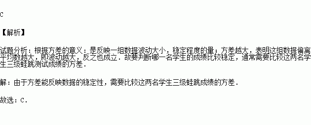 (2015•广州)两名同学进行了10次三级蛙跳测试,经计算,他们的平均成绩相同,若要比较这两名同学的成绩哪一位更稳定,通常还需要比较他们成绩的( )