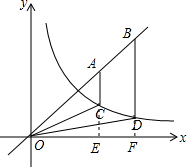 ∵C、D两点在交双曲线$y=\frac{1}{x}$(x>0)上,则CE=$\frac{1}{a}$,DF=$\frac{1}{b}$.
