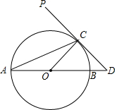 如图,AB为⊙O的直径,PD切⊙O于点C,交AB的延长线于点D,且∠D=2∠CAD.