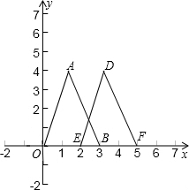 如图,在平面直角坐标系中,点A的坐标为(2,4),点B的坐标为(3,0).把△AOB沿射线OB的方向平移2个单位,其中A、O、B的对应点分别为D、E、F.