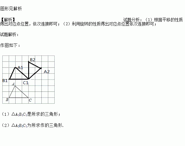 (1)画出将△ABC向上平移3个单位后得到的△A1B1C1,