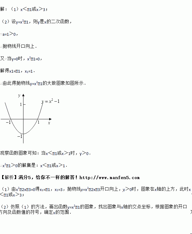 (2)仿照上例,用图象法解一元二次不等式:x2﹣1>0.