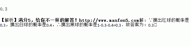 口袋内装有一些除颜色外完全相同的红球、白球和黑球,从中摸出一球,摸出红球的概率是0.3,摸出白球的概率是0.4,那么摸出黑球的概率是_________.