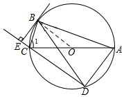 解答 解:(1)∵$\widehat{BD}$=$\widehat{BA}$,