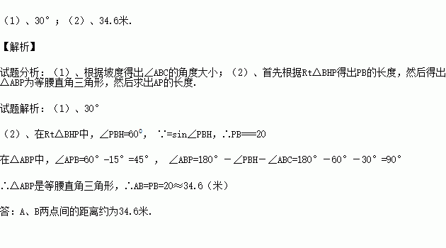 (2)求A、B两点间的距离(结果精确到0.1米.参考数据≈1.732)