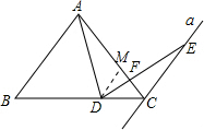 已知△ABC为等边三角形,直线a∥AB,D为直线BC上一点,∠ADE的一边DE交直线a于点E,∠ADE=60°,若D在BC上,求证:CD+CE=CA.