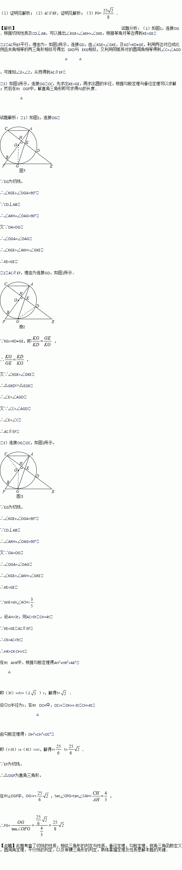 (2)若KG2=KD•GE,试判断AC与EF的位置关系,并说明理由;
