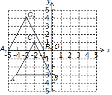 解答 解:(1)如图,△A1B1C1即为所求,由图可知A1(-5,0),B1(-1,0),C1(-3,4);