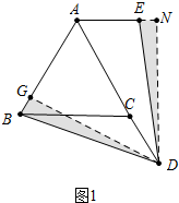 分析 (1)如图1中,作DG⊥AB于G,DN⊥AE于N.只要证明△DGB≌△DNE,得∠BDG=∠EDN,推出∠BDE=∠GDN,求出∠GDN即可解决问题.