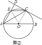分析 (1)连接OC,如图①,根据切线的性质得OC⊥DC,而AD⊥DC,则可判断AD∥OC,根据平行线的性质得∠DAC=∠ACO,加上∠OCA=∠CAB=30°,所以∠DAC=30°,