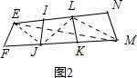 点评 本题主要考查了相似三角形的判定与性质、平行线的判定与性质、等高三角形的面积比等于底的比等知识,证到L、I是EN的三等分点及J、K是FM的三等分点,并由此证到四边形ILKJ的面积是四边形EFMN面积的三分之一是解决本题的关键.