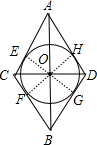 解答:证明:过点O分别作菱形各边的垂线,垂足分别为E、F、G、H,如图,