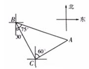 轮船从B处以每小时50海里的速度沿南偏东30°方向匀速航行,在B处观测灯塔A位于南偏东75°方向上,轮船航行半小时到达C处,在观测灯塔A北偏东60°方向上,则C处与灯塔A的距离是 ____________海里