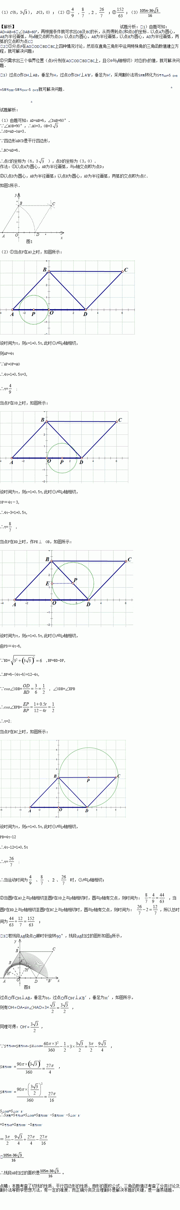 (2)若半径为1的⊙P从点A出发,沿A—D—B—C以每秒4个单位长的速度匀速移动,同时⊙P的半径以每秒0.5个单位长的速度增加,运动到点C时运动停止,当运动时间为t秒时
