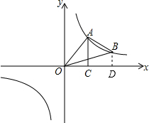 解答 解:(1)∵点A在反比例函数y=$\frac{k}{x}$(k>0)的图象上,过点A作x轴的垂线,垂足为C,△AOC的面积为2,