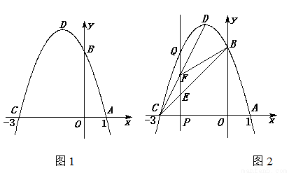 与x轴交点A(1,0),B(-3,0) .与y轴交点B(0,3),如图1所示,D为抛物线的顶点。