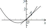 分析:由抛物线y=ax2+bx+c经过O(0,0),得到c=0,而直线OA的解析式为y=x,再变形不等式ax2+bx-x>0为:ax2+bx>x,则可理解求x的范围使函数y=ax2+bx比函数y=x的函数值大,然后画出两函数的图象,它们的交点为A(1,1)和O(0,0),观察图象即可得到x的取值范围.