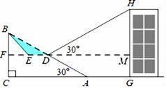 (2)一座建筑物GH距离A处36米远(即AG为36米),小明在D处测得建筑物顶部H的仰角(即∠HDM)为30°.点B、C、A、G、H在同一个平面内,点C、A、G在同一条直线上,且HG⊥CG,求建筑物GH的高度.(结果保留根号)