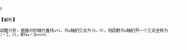 如图,抛物线y=ax2+bx+c(a>0)的对称轴是过点(1,0)且平行于y轴的直线,若点P(4,0)在该抛物线上,则4a﹣2b+c的值为 .