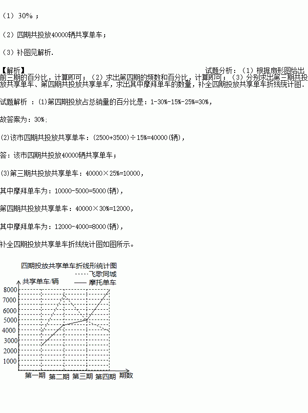当下共享单车在各大城市相当火热,给人们的短距离出行带来了许多便利.某市准备在2017年分四期投放若干辆“飞歌同程”和“摩拜单车”两种品牌的共享单车.决策人员根据计划绘制了如图所示的两幅统计图.