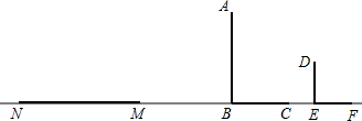 如图,一墙墩(用线段AB表示)的影子是BC,小明(用线段DE表示)的影子是EF,在M处有一颗大树,它的影子是MN.
