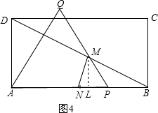 如图4,当BM=BN时,作ML⊥AB于L,
