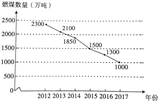 (2)先分别求出2014年、2015年、2017年全市燃煤数量,再将折线统计图补充完整即可;