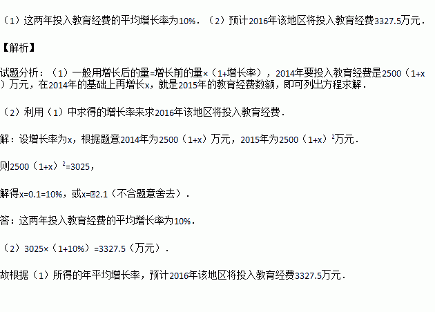 某地区2013年投入教育经费2500万元,2015年投入教育经费3025万元.