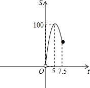 即S=-4(t-5)2+100(0<t≤7.5s).