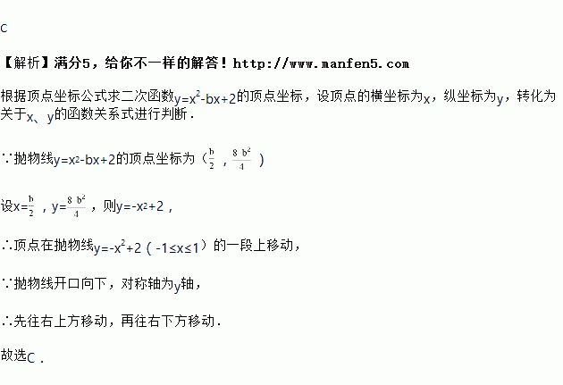 已知二次函数y=x2﹣bx+2(﹣2≤b≤2),当b从﹣2逐渐增加到2的过程中,它所对应的抛物线的位置也随之变动,下列关于抛物线的移动方向的描述中,正确的是( )