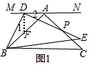 解答 (1)证明:如图1,过点D作DF⊥MN,交AB于点F,![]()